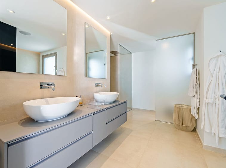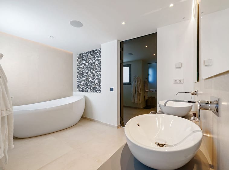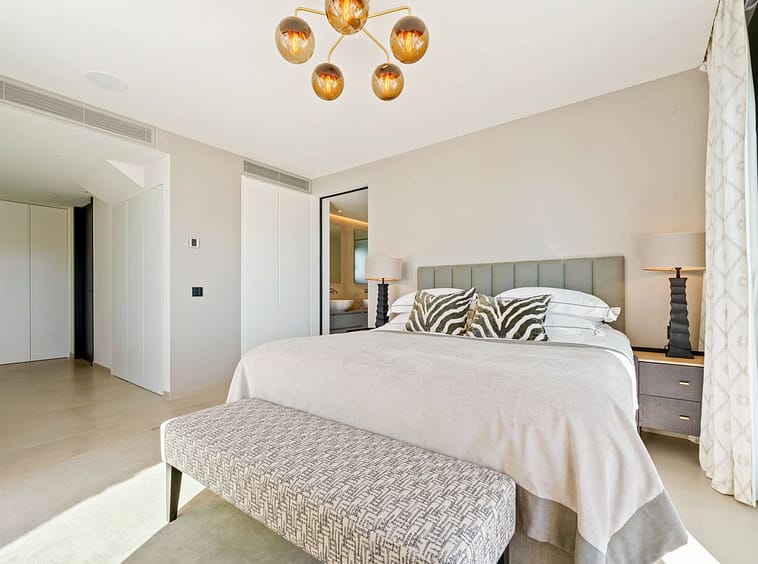 The upper level is dedicated entirely to the master suite — a private sanctuary with its own terrace, dressing area, and bathroom finished to the highest standard. The rooftop solarium provides an additional outdoor retreat with uninterrupted panoramic views.