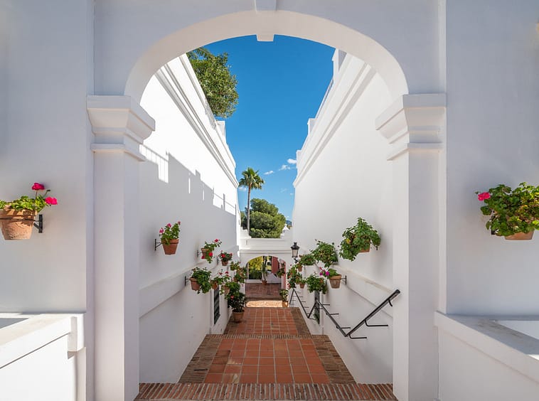 Aloha Pueblo’s community vibe is enhanced by its on-site cafes, restaurants, a bank, and a beauty salon. The area is well-connected: Marbella’s centre and Puerto Banús are 10 minutes by car, while San Pedro de Alcántara is 15 minutes away. Families benefit from proximity to reputable schools, and the A-7 road links key destinations like Málaga Airport (45 minutes). Outdoor enthusiasts will appreciate nearby golf clubs, beaches, and walking trails. With its combination of tranquillity and accessibility, this townhouse is a practical choice for modern Costa del Sol living.