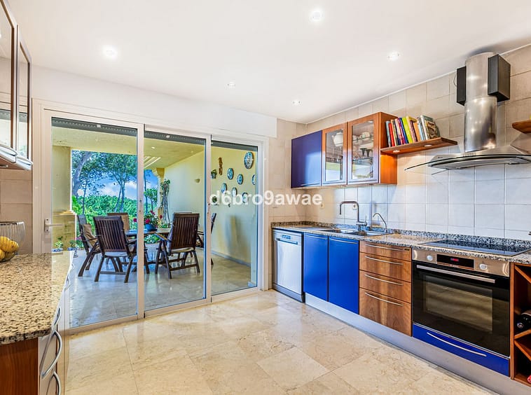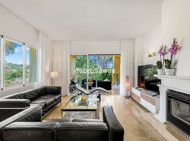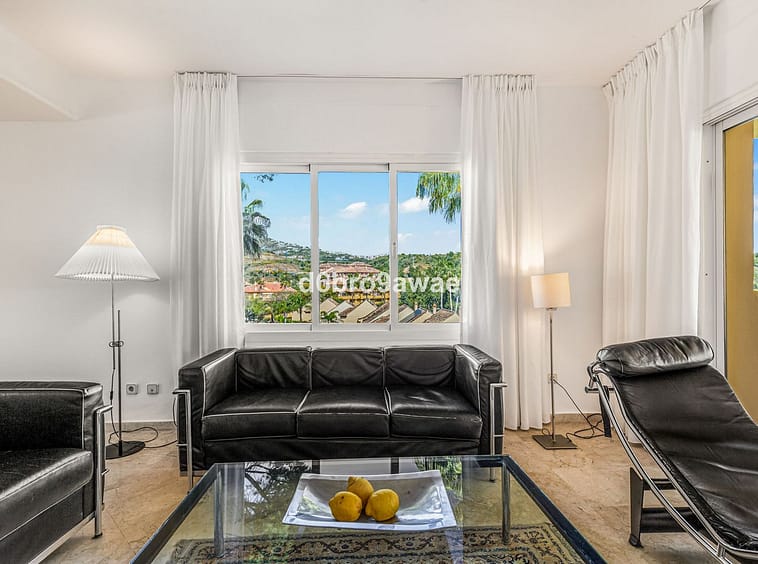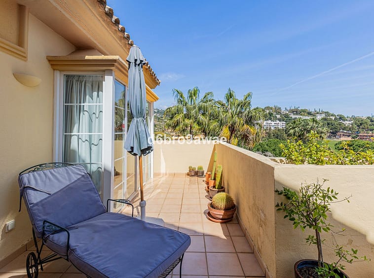 The large terrace on the upper floor offers views over the Río Real golf course and subtle sea views, and enjoys afternoon sun until 16:00.