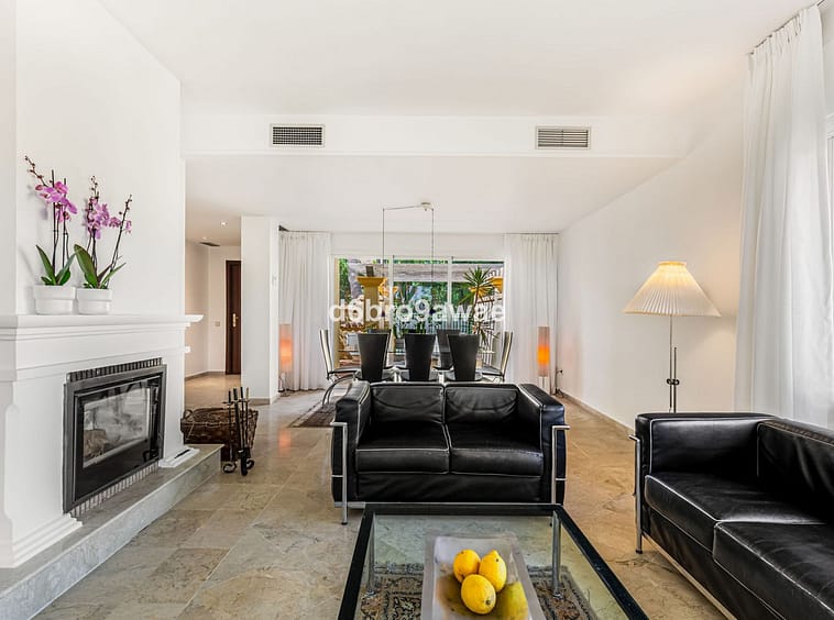 The property is located in the quiet and green residential area of Río Real, east of Marbella, on a cul-de-sac. Río Real is a sought-after area with beautiful villas, townhouses and apartments, largely built around the golf course.