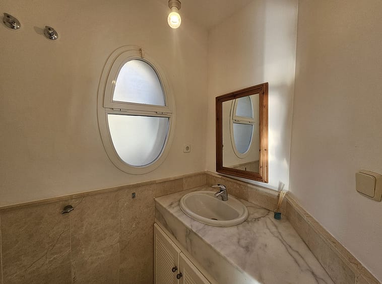Exceptionally bright and attractively priced semi-detached villa in Riviera del Sol. Distributed over three floors, this property offers 3 bedrooms, 2 full bathrooms and a guest toilet, as well as a living room, separate kitchen, private garage and a garden of almost 70 m2. It includes marble flooring, a small storage room under the stairs, two terraces plus a solarium with sea views totaling approximately 30-40 m2. The house faces south/southeast and is located within a gated community with communal swimming pools and easy access to the Riviera del Sol bus stop. With a constructed area of 151 m2, this is a fantastic opportunity.