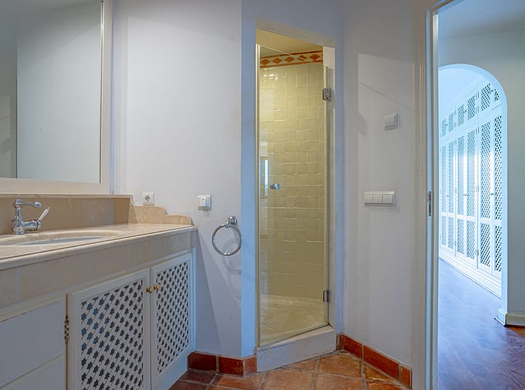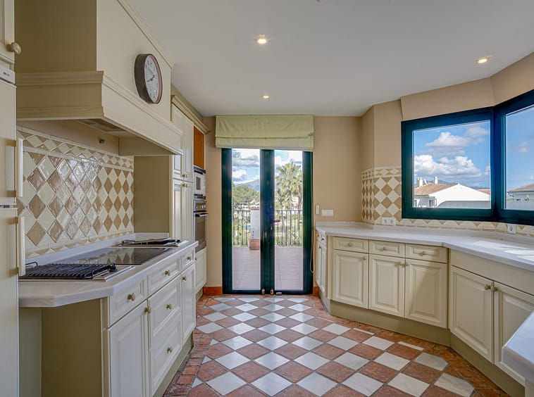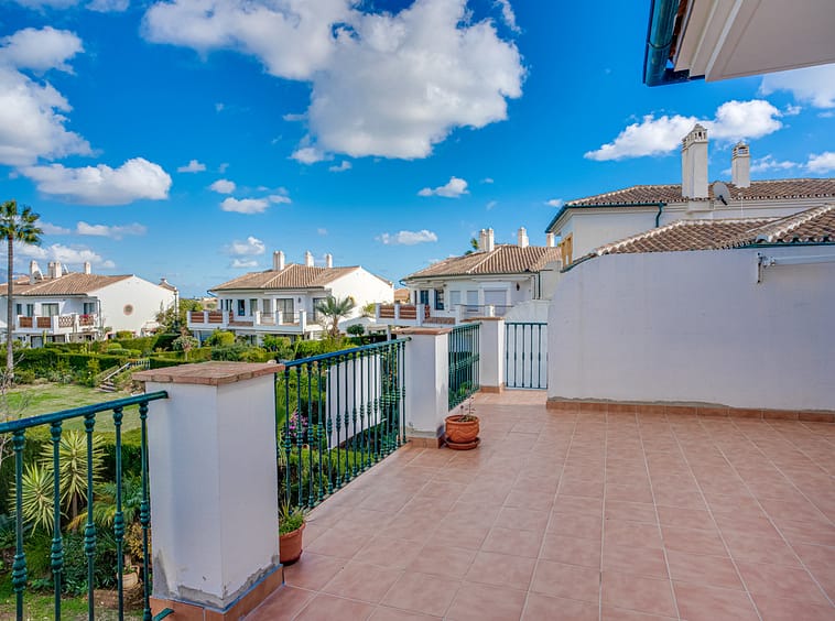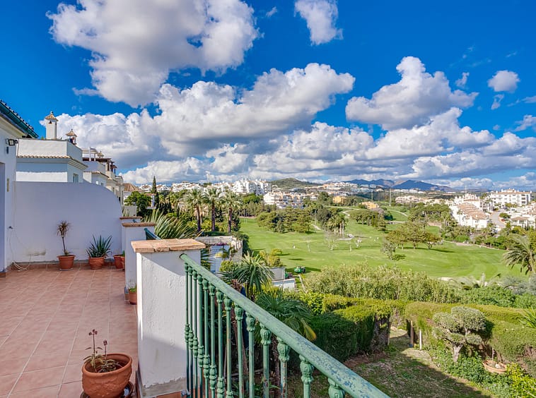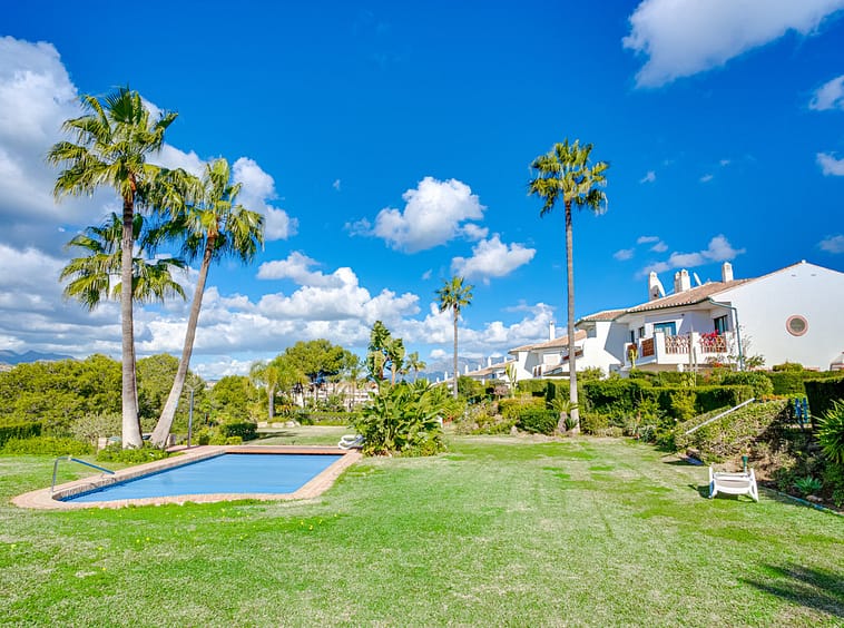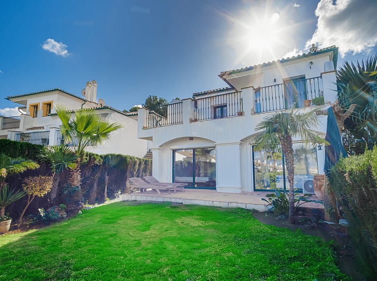 Lovely three-bedroom semi detached Villa in a gated community of Riviera Del Sol, the community has well kept gardens, two communal swimming pools, one of them being heated, and is a short walk to the beach and local amenities. The property has an open plan living and dining area with a built-in fireplace and access to the spacious terrace with views to the mountains, golf and pool; fully fitted kitchen; and guest toilet. The lower-level leads to the master suite with access to the private garden; two guest suites; and access to the private double garage. Other features include hot and cold air conditioning, electric shutters and fitted wardrobes. A great reform opportunity in a residential community.
