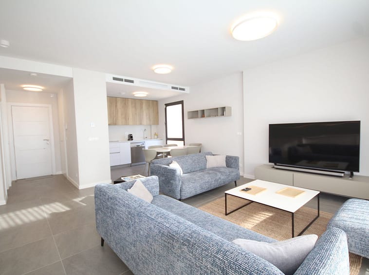 The main entrance leads to an inviting upper floor featuring an open-concept living-dining room and a fully equipped open-plan kitchen, plus a convenient guest toilet. The highlight? A spacious 8m+ terrace offering stunning panoramic sea and mountain views, perfectly oriented for afternoon sun with its southwest aspect.