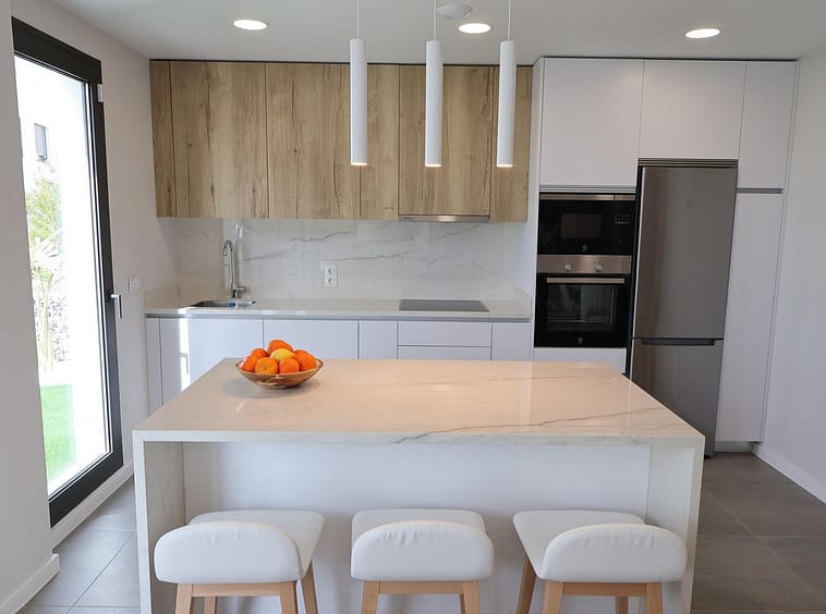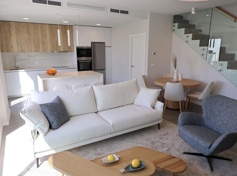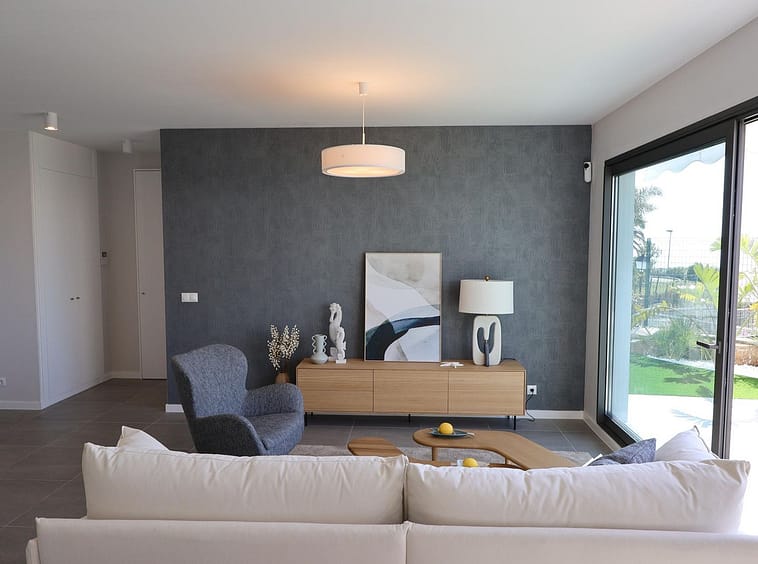 The property offers 96 m² of usable interior space distributed across two levels, complemented by a private plot of 168 m² with garden space, ideal for enjoying the region’s exceptional climate. The bright living area opens directly onto the outdoor space, creating a natural flow between indoor and outdoor living.