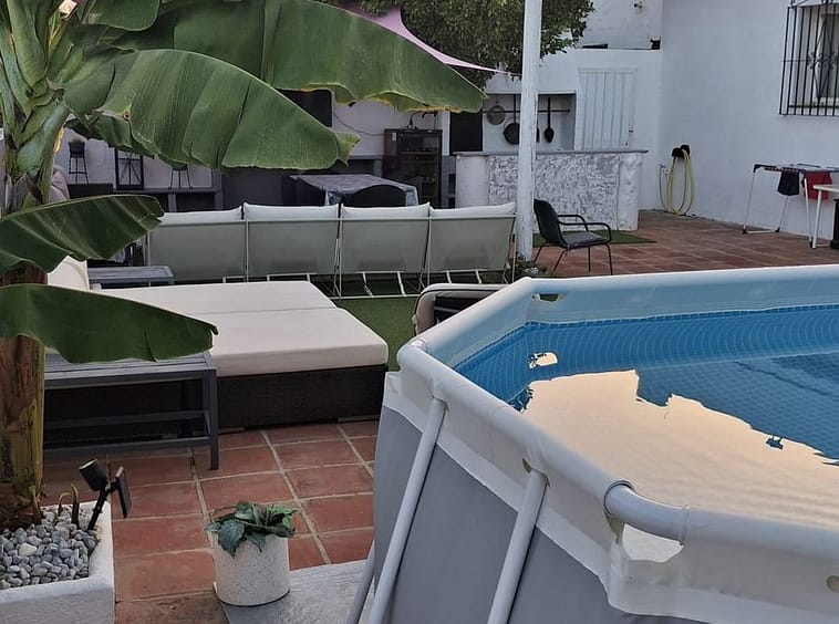 Spanning 267 m² on a single floor for seamless accessibility, this south-facing home radiates warmth with three spacious bedrooms featuring built-in wardrobes, one modern bathroom, a bright living area, and a fully equipped kitchen. The standout feature is the extensive terrace complete with a kitchenette, barbecue zone, and a private pool – ideal for al fresco entertaining under the sun. The generous 1,266 m² plot is a gardener's paradise, boasting a productive fruit orchard with fig, lemon, orange, mandarin, apple, cherimoya, olive trees, and a magnificent large avocado, plus a dedicated small plot for sowing vegetables or herbs. Additional comforts include air conditioning throughout, a storage room, and a private garage, all in a property ready to embrace your personal touch.