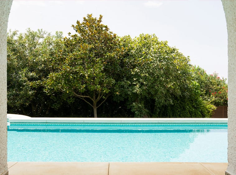 The lush, private garden forms a green oasis, ideal for outdoor living, entertaining, or simply enjoying the year-round Mediterranean climate.