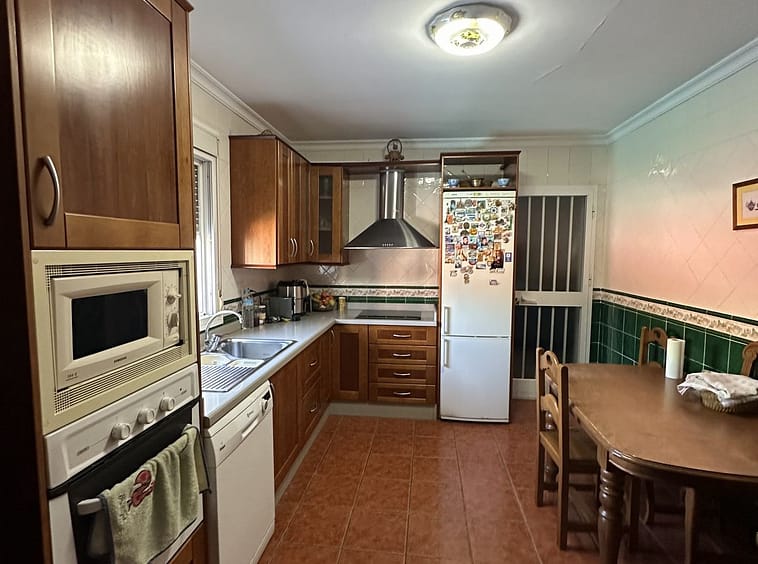 The property has 97 m² constructed area and 95 m² usable area, distributed in a bright living-dining room, a main kitchen and a second kitchen-pantry. The three spacious bedrooms include a master bedroom with en suite bathroom, while the other two share an additional bathroom.
