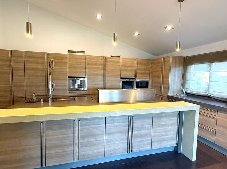 The villa’s meticulously landscaped garden is a true highlight, offering a private swimming pool, ideal for cooling off on warm days. An inviting barbecue area and a pergola create the perfect setting for alfresco dining and gatherings with family and friends. The outdoor space is designed for both relaxation and entertainment, providing a seamless blend of luxury and nature.