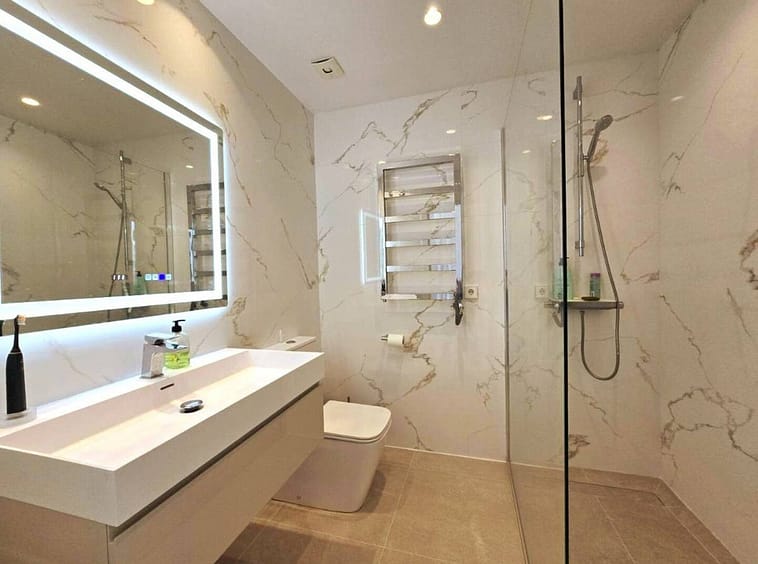 – Two new Porcelanosa bathrooms and a guest toilet, all with updated electrics