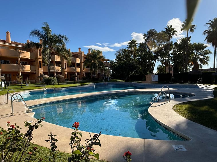 This beautiful corner ground-floor apartment is nestled within the gated and meticulously maintained El Porton 7 complex in Calahonda, Mijas Costa. The property enjoys a bright and airy atmosphere, with direct access to a large swimming pool set amidst lush gardens filled with tropical trees—a perfect oasis for relaxation.