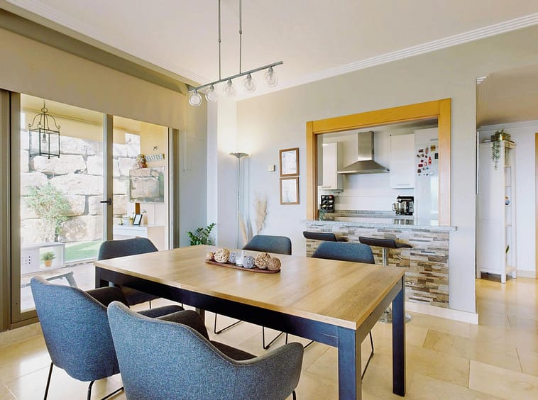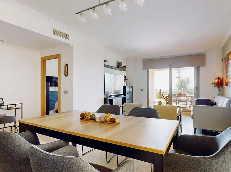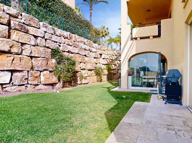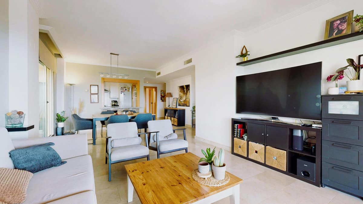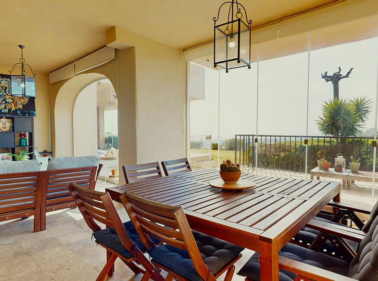 If you are looking for a private retreat where privacy and views take center stage, this corner ground-floor apartment is your property. Positioned in a prime spot within the complex, it stands out for its private garden and a glass-enclosed terrace that functions as a second living room overlooking the sea—guaranteeing spectacular sunsets.