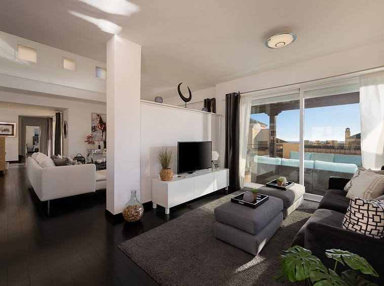 This stunning duplex penthouse in Elviria is a unique opportunity for investment and personal enjoyment, with unrivalled sea views and a privileged location close to all amenities and the beach. With a generous surface area and modern design, this property offers four bedrooms and four en-suite bathrooms, plus a guest toilet next to the living room. The bedrooms are distributed over two levels that maximise comfort and privacy.