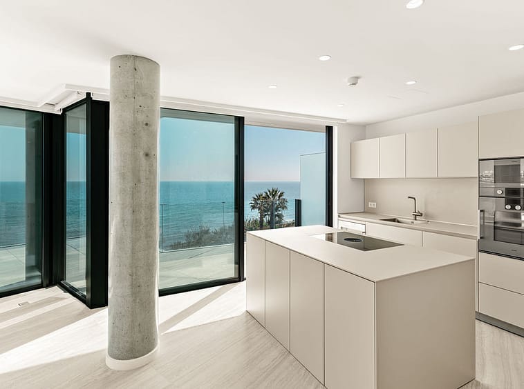 Every detail of this stunning residence is crafted to perfection, featuring a high-end Bulthaup kitchen with state-of-the-art Gaggenau appliances, luxurious Laufen bathrooms, and expansive living spaces designed for modern coastal living. Smart home technology allows you to control lighting, climate, and security with ease, while underfloor heating throughout ensures warmth and comfort all year round. The penthouse is fully thermally and acoustically insulated, providing an oasis of tranquility by the sea. Two spacious parking spaces and two large storage rooms add convenience and functionality to this exceptional property, while 24-hour security offers peace of mind in an exclusive and private setting.