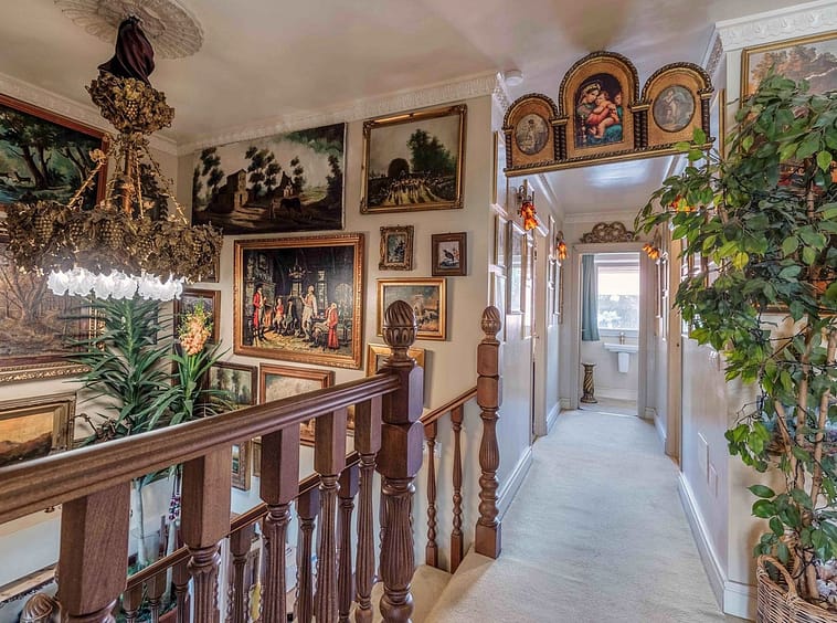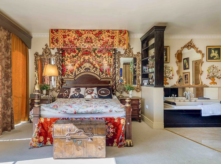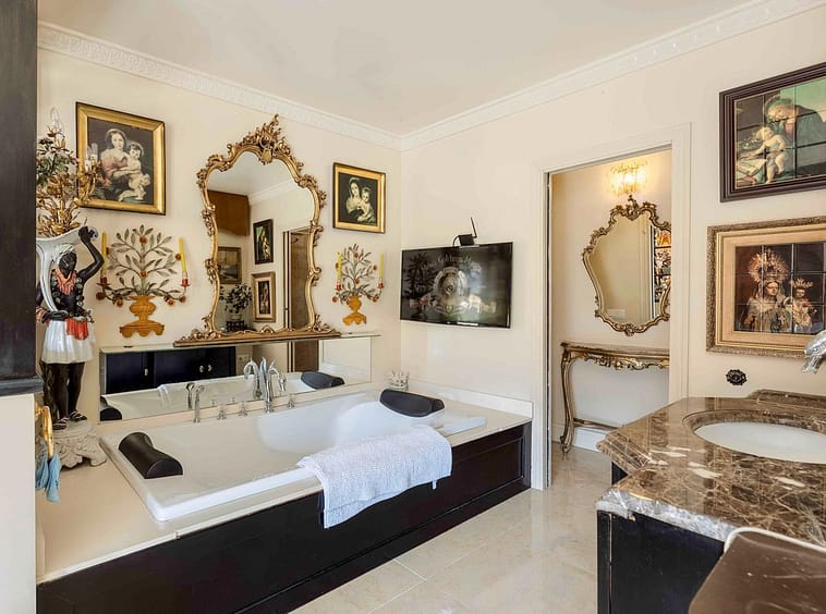Crowning the residence is the opulent master suite, a sprawling retreat featuring a stately four-poster bed, a sunlit sitting area, and a lavish open-concept bathroom. Here, freestanding tubs and artisanal finishes create a spa-like sanctuary. The additional bedrooms boast ensuite bathrooms adorned with premium details, complemented by a convenient guest powder room nestled between them.