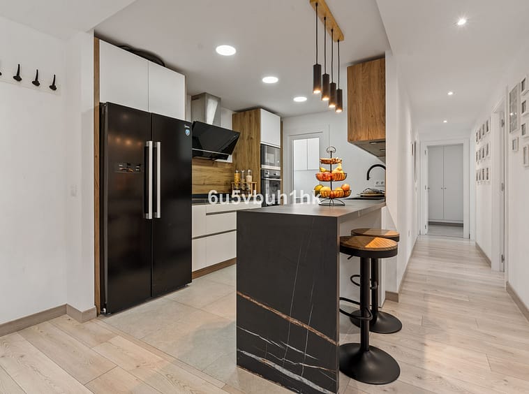 The home offers 149.59 m² built and 121.27 m² of usable interior space, complemented by a spectacular private rooftop terrace of approximately 60 m², designed to fully embrace the Mediterranean lifestyle. The spacious living room, filled with natural light, opens onto a pleasant terrace, while the open-plan kitchen by Schmidt Kitchens, equipped with top-brand appliances and a Quooker system, perfectly blends design and functionality.