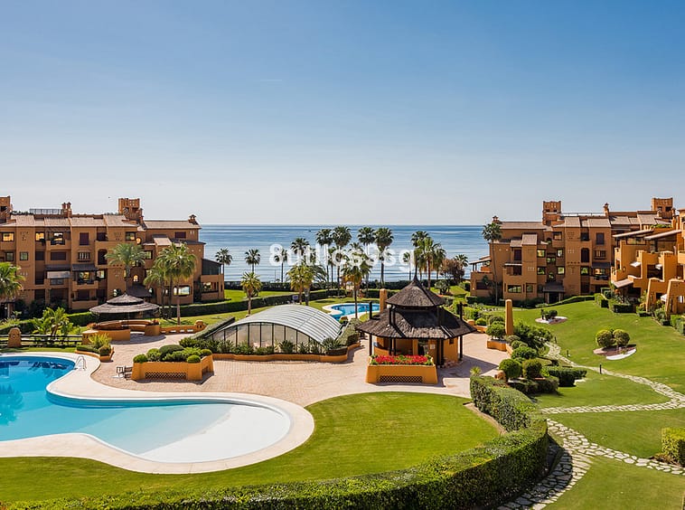 This ground floor apartment is situated in Los Granados del Mar, Estepona East, offering direct access to the beachfront and proximity to local amenities. The property stands out for its generous dimensions, comprising 273m² built area with 186m² of interior space and an 87m² terrace. Its location within a gated community ensures both privacy and security, with 24-hour surveillance and security services in place.