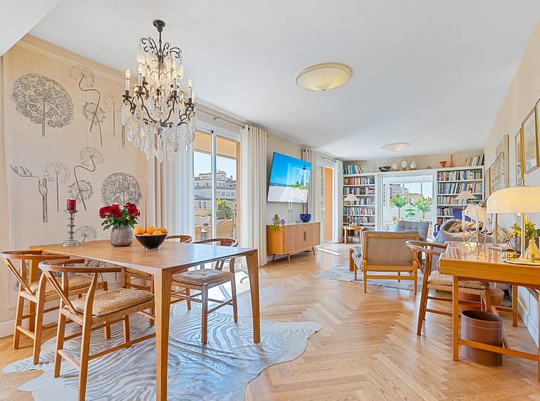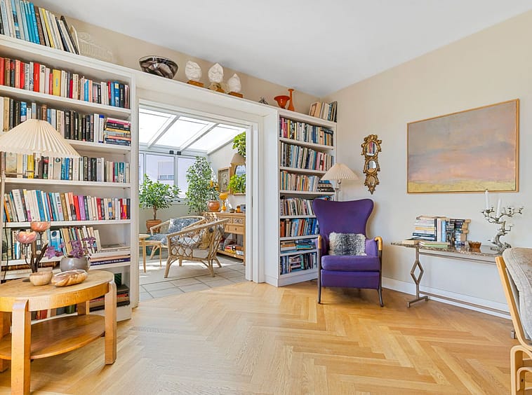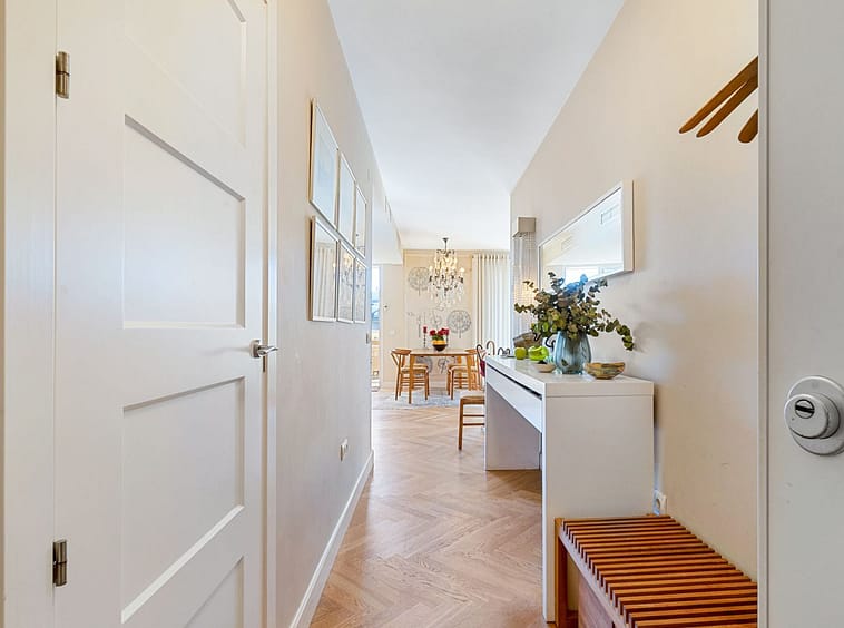 From the living room, there are three separate exits to the impressive south-facing terrace of 64 m² – a true oasis that enjoys sunshine throughout the day. The terrace is tastefully divided into several areas: