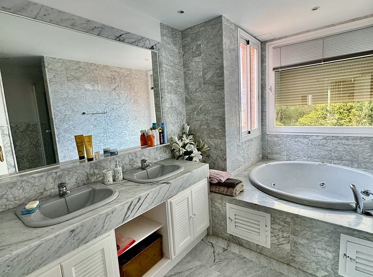Beautiful duplex penthouse with 4 spacious bedrooms, with en-suite bathrooms, located in the prestigious ALHAMBRA DEL GOLF residential complex. The Mendieta property is accessed via a private lift. On the ground floor, in addition to the large living-dining room with a fireplace and access to a south-west facing terrace, there is also a refurbished kitchen with a utility room and a guest bathroom. Also on this floor are two spacious bedrooms with en-suite bathrooms. The upper floor consists of two very large bedrooms with beautiful vaulted ceilings, both with en-suite bathrooms. The master bedroom has access to another semi-covered terrace facing southwest. The apartment is sold with a parking space included.