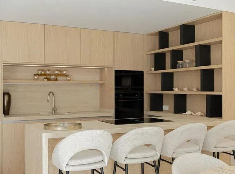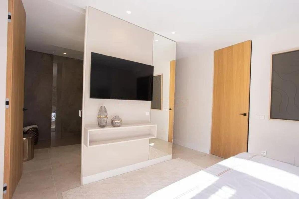 The property is distributed over two levels plus a solarium. On the entrance floor, the interior spaces flow naturally towards the outside thanks to a spacious open-plan living-dining room with direct access to a generous terrace, perfect for enjoying the Mediterranean climate or for social gatherings. On this level there is also a contemporary kitchen, a guest toilet and a bedroom, providing functionality and comfort for everyday living.