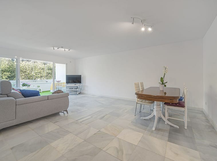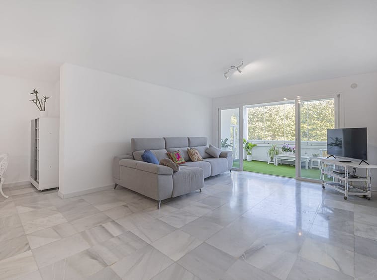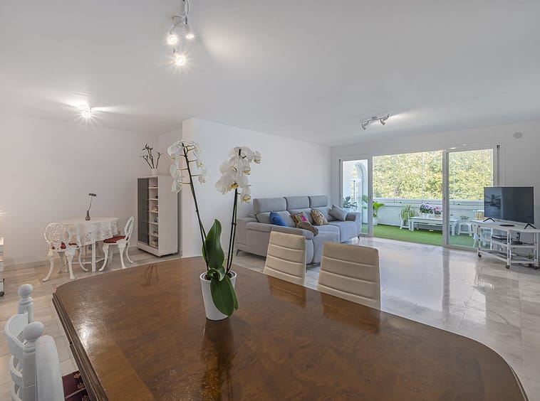 Spacious flat to refurbish in Nueva Andalucia, close to Centro Comercial Plaza and walking distance to Puerto Banus. Discover a unique option! A spacious flat, designed on one floor, which is characterised by its functional and comfortable layout. Upon entering the property, you will be greeted by a spacious entrance hall leading to an independent kitchen fully equipped with appliances and a laundry room. The living-dining room is bright and offers direct access to an enclosed terrace with open views. The flat has four generously sized bedrooms, all of them equipped with fitted wardrobes offering ample storage space. Furthermore, there are two complete bathrooms, some of them en suite. This property has many possibilities for refurbishment.