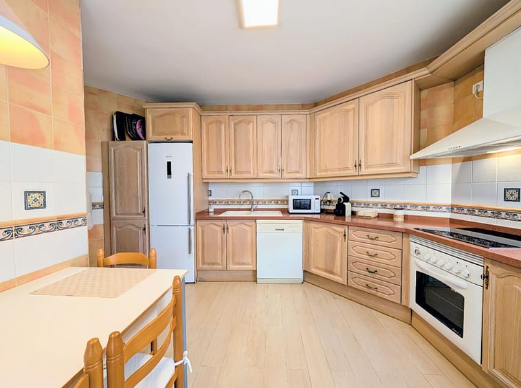 Built over two floors, this extraordinary Penthouse is very well kept and ready to move in. The property comes with underfloor heating throughout, A/C hot & cold and authentic sauna. On the entrance consits of: entrance hall, a good size living-dinning room with access to the terrace overlooking community gardens & swimming pools. Further there is a fully fitted kitchen & utility room, two guest bedrooms sharing family bathroom (walk-in shower) and master bedroom with en-suite bathroom (walk-in shower). All the bedrooms are ample, with plenty of natural light. Marble staircase takes to the upper level where there is a second living room, beautiful solarium terrace with sunbathing and sitting areas, guest bedroom, walk-in wardrobe and guest bathroom with walk-in shower and built in sauna.