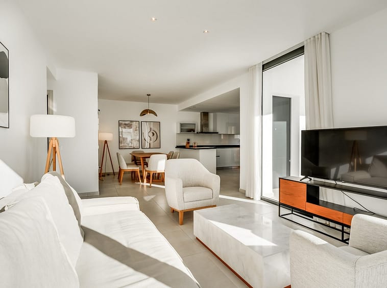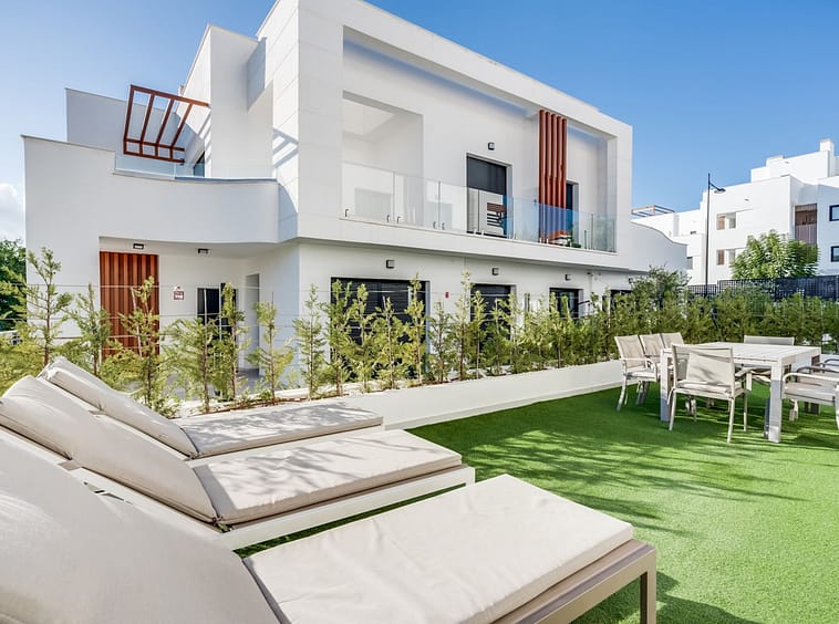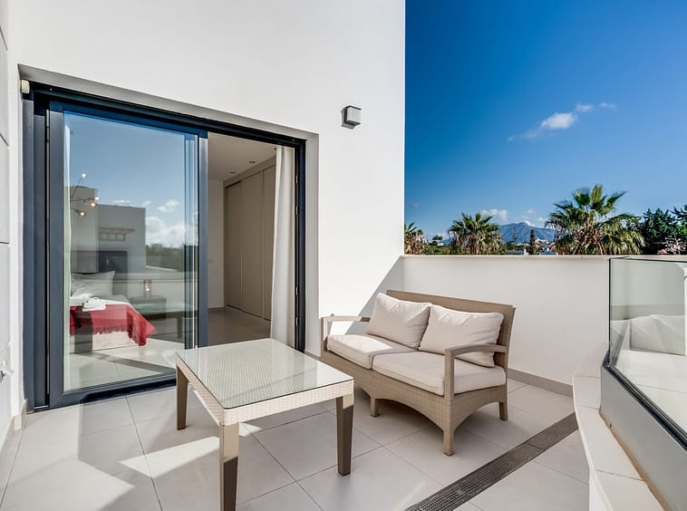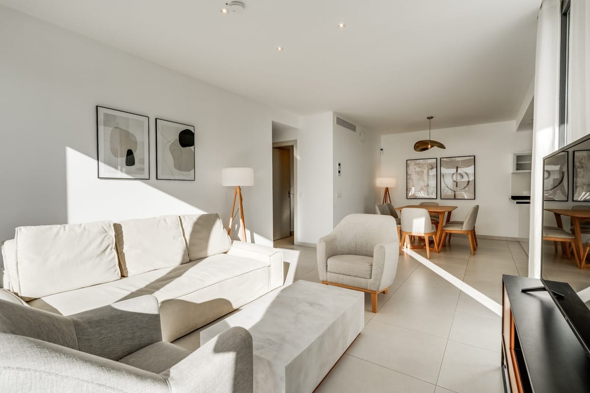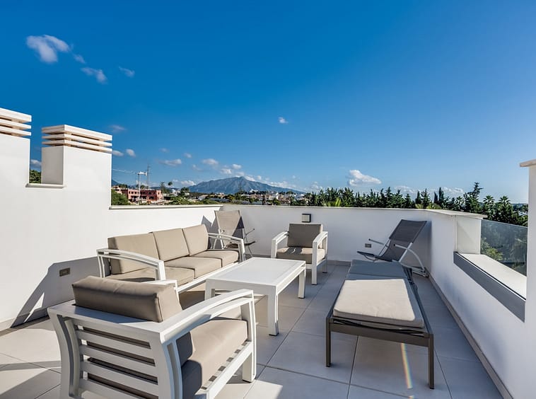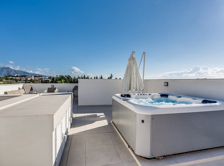 Los Miradores del Sol is a distinctive development situated on the New Golden Mile. This contemporary property features four bedrooms, three bathrooms, and an open-plan dining and living area, with direct access to the communal pool and several terraces, including a spacious rooftop terrace equipped with a BBQ area and Jacuzzi.