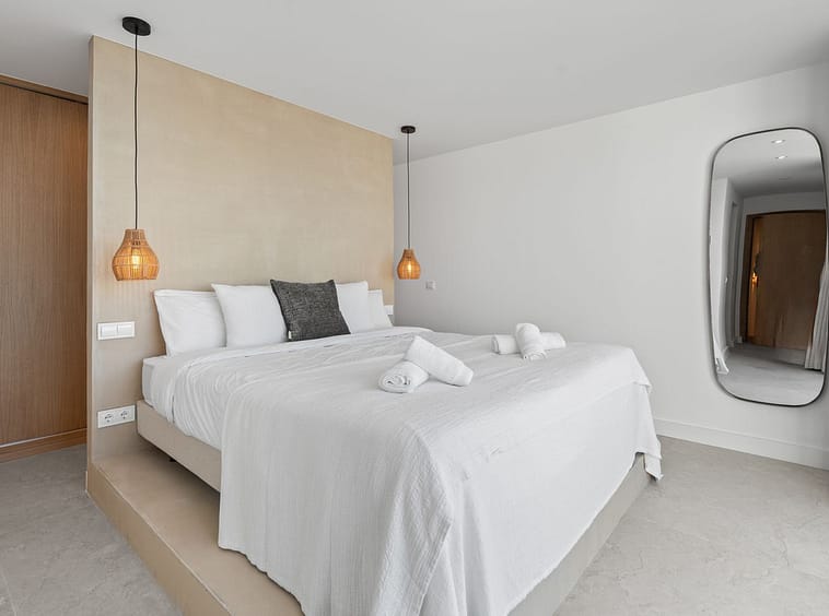 The villa offers 4 spacious bedrooms, each with its own ensuite bathroom, as well as two guest toilets. The master suite occupies the upper level and features a private terrace with spectacular sea views.
