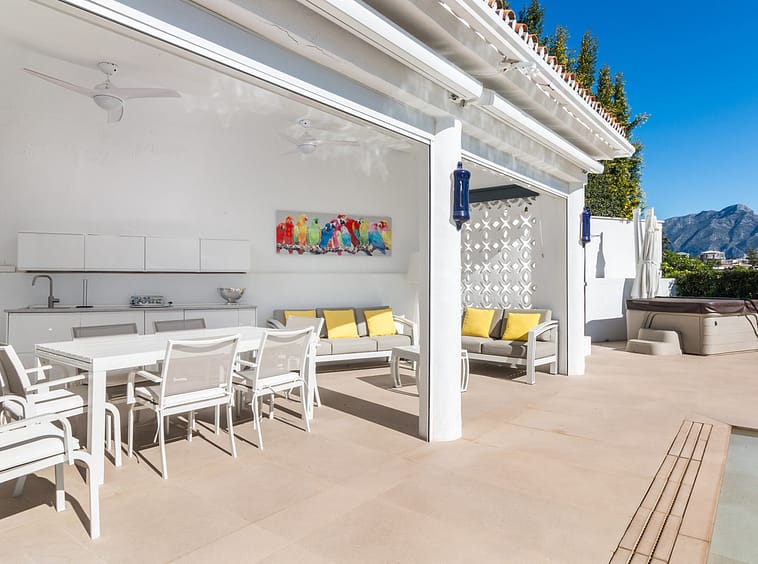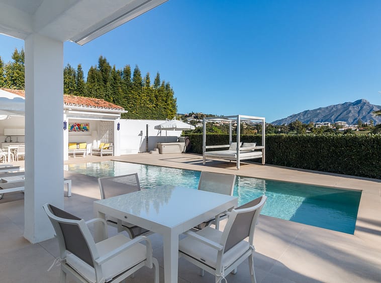 Nestled in the tranquil and prestigious area of Fuente del Espanto, Benahavis, this exquisite Andalusian-style detached villa offers a harmonious blend of rustic charm and modern luxury. Located just a few minutes’ drive from the bustling town centre of San Pedro de Alcantara, this property enjoys a serene setting with open views to the iconic La Concha mountain. Boasting east, west, and south orientations, the villa is bathed in sunlight throughout the day and offers unparalleled privacy in a quiet residential area.