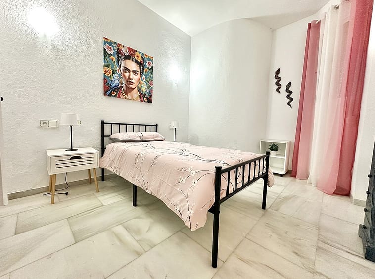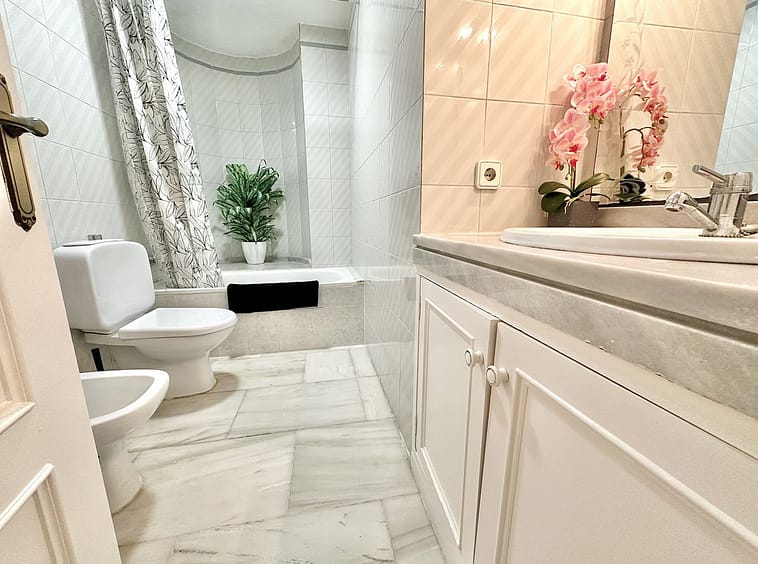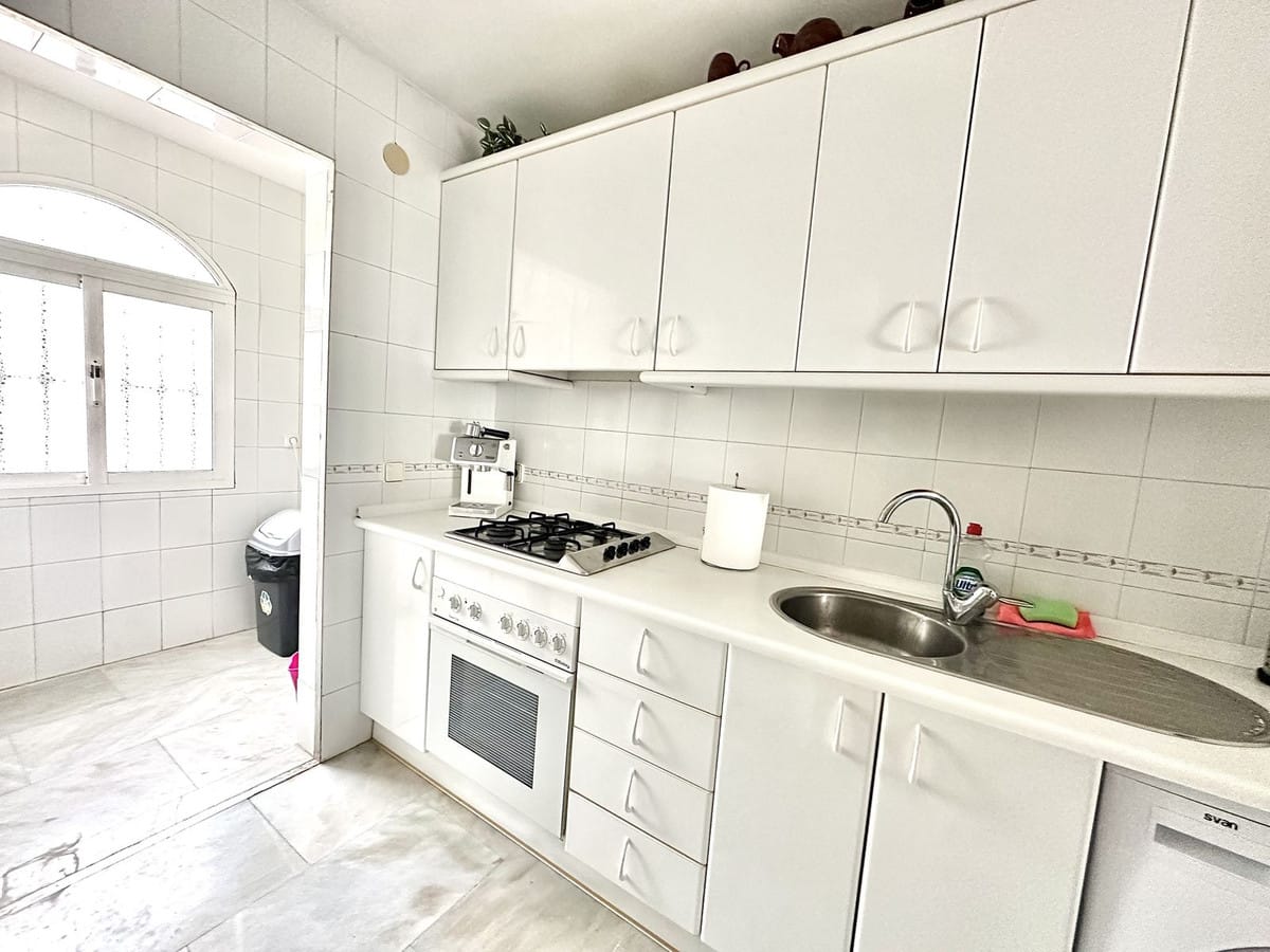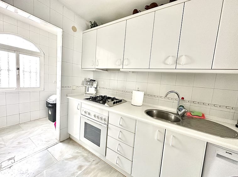 The ground floor houses the sleeping area, consisting of three bedrooms and two bathrooms, one of them en-suite in the master bedroom. Both the master bedroom and one of the secondary bedrooms have direct access to a private garden of approximately 50 m², an intimate and pleasant space that connects directly to the community pool, ideal for enjoying the climate and outdoor living.