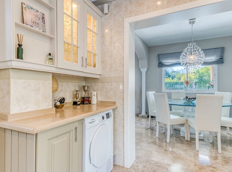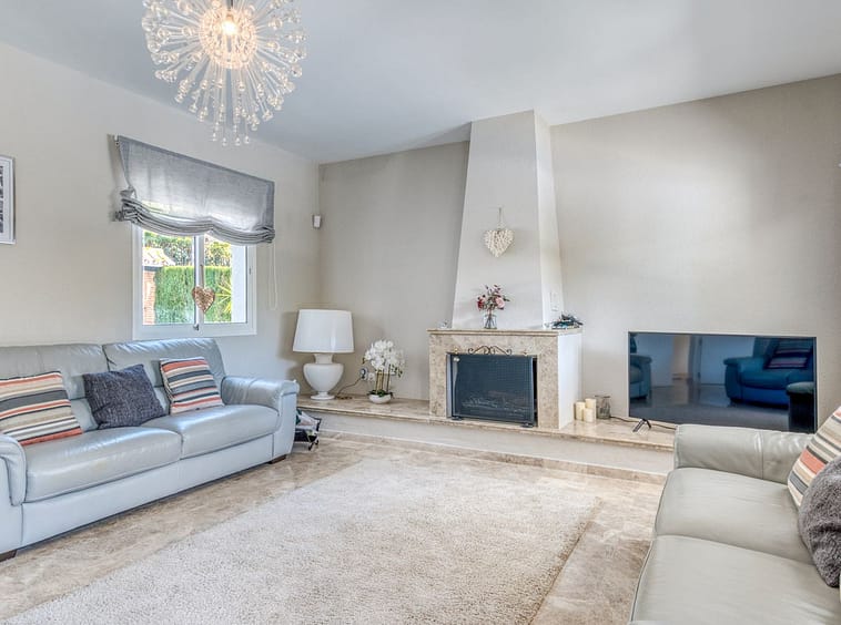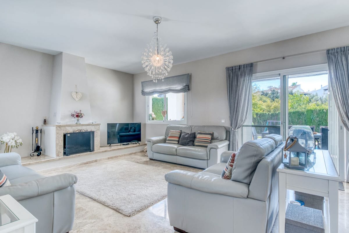 The main living level features an entrance hall leading into a bright living and dining area with large windows opening onto garden terraces. The kitchen is positioned beside the living space and offers good potential for upgrading, while a guest bathroom completes this level. Upstairs, there are four well-proportioned bedrooms and two bathrooms, with the principal rooms enjoying pleasant views over the surrounding greenery. A private terrace provides a relaxing space to enjoy the Costa del Sol climate. The lower level includes a spacious basement with garage and storage areas, offering flexibility for additional living space such as a gym, cinema room or guest accommodation if desired.