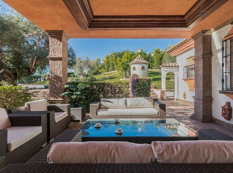 This Andalusian-style villa, designed by a renowned German architect in 2001, seamlessly blends traditional charm with modern comfort. Nestled just a quick two-minute walk from the beach, the villa features a delightful garden with fruit trees and ancient olive groves. The spacious terrace, divided into a barbecue area and a relaxation zone, provides the perfect setting for outdoor enjoyment.