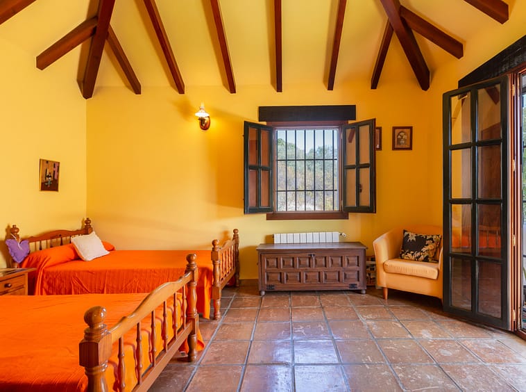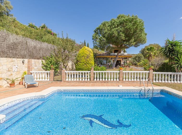 Rustic style villa distributed over three floors, located in a quiet area of Elviria. The property has four bedrooms, two bathrooms and a toilet, a fully fitted kitchen and a spacious living room. It is characterized by its high ceilings, its Andalusian style and the large basement with an area of 200 m2. It also has a garage with capacity for three cars.