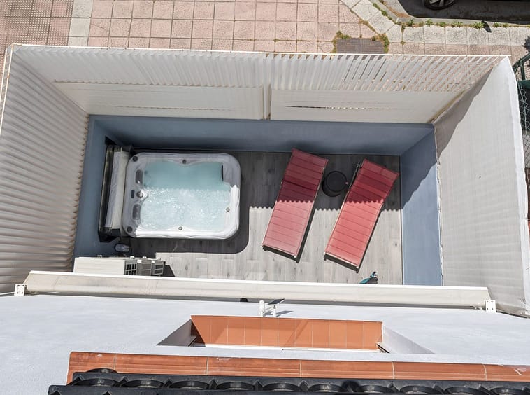 The open-plan living area leads to a stylish terrace with a bioclimatic pergola and outdoor jacuzzi, creating a private oasis for relaxation. The house comes fully furnished, and includes air conditioning, underfloor heating, double glazing, electric shutters, alarm system, and an excellent A-rated energy certificate. A 6.3 kWh solar panel system ensures extremely low annual electricity costs (approx. 300–500€).