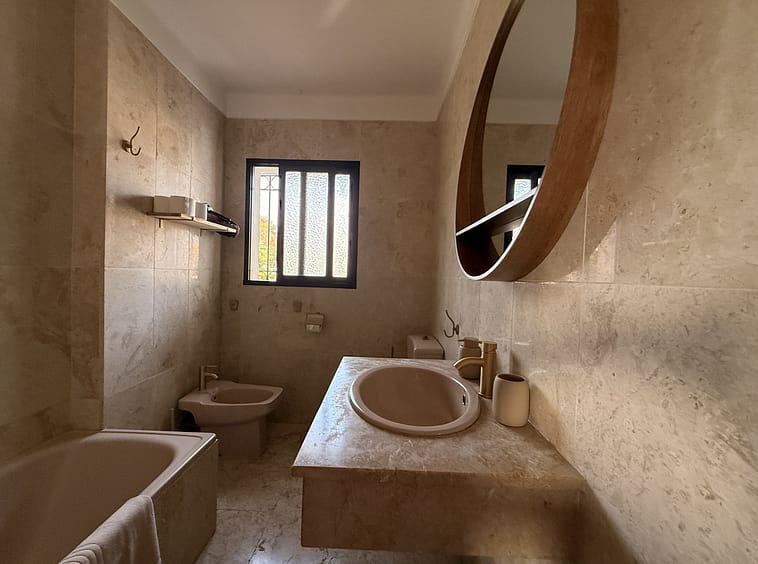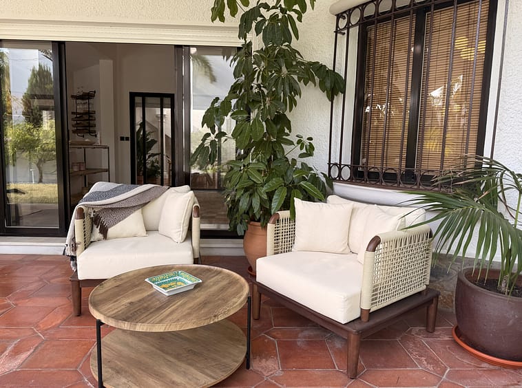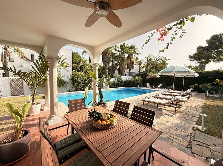 Outside, a lush, mature garden filled with tropical and Mediterranean flora surrounds the villa. Shaded terraces and covered porches offer the perfect settings for al fresco dining or tranquil lounging, while a private swimming pool provides a refreshing retreat.