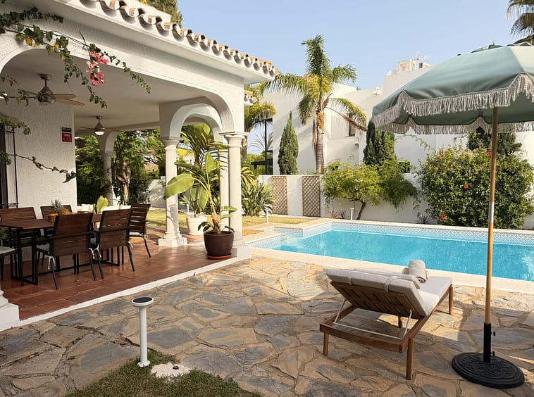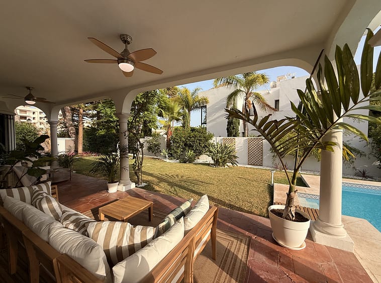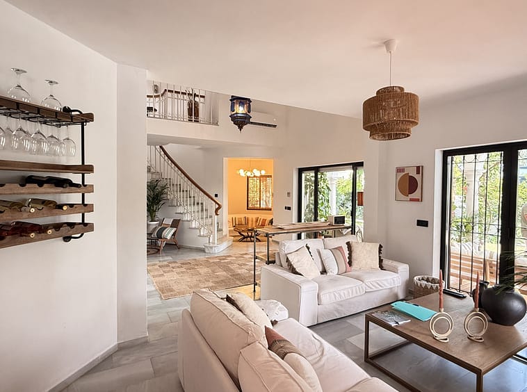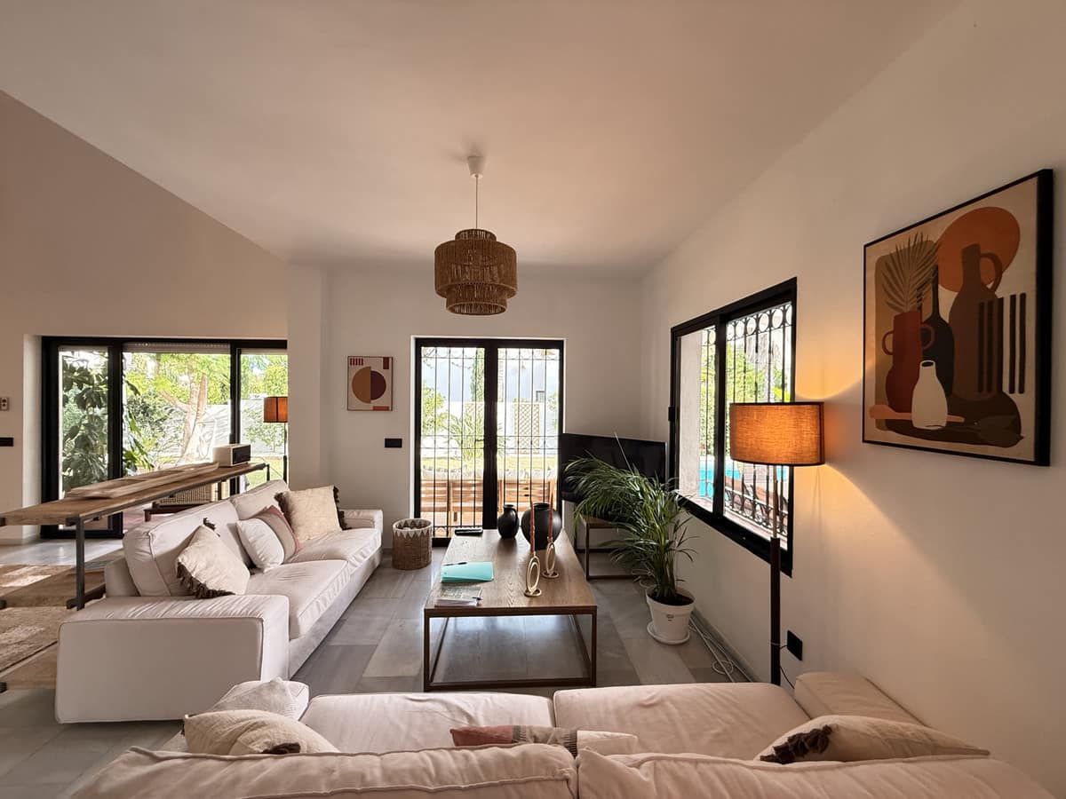 Just a few steps from the sea and the scenic coastal path, nestled within one of Estepona’s most exclusive and tranquil enclaves, lies this beautifully renovated Mediterranean-style villa. Exuding timeless elegance and contemporary comfort, the property sits on a generous plot of approximately 1,200 m² and offers a constructed area of around 380 m², spread across two floors plus a rooftop terrace boasting sweeping views of the Mediterranean.