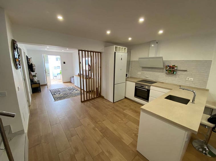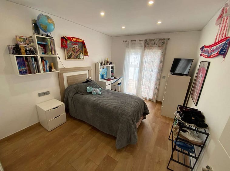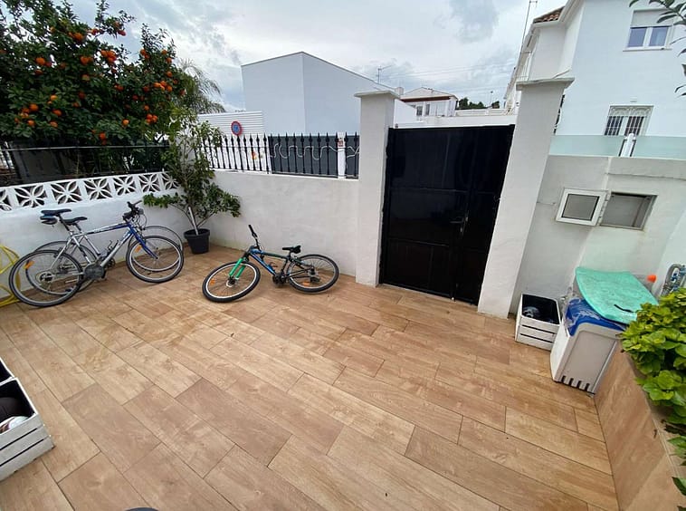 Excellent semi-detached villa for sale in Los Boliches. It sits on a 122 m² plot and has 135 m² of living space. The property features 4 bedrooms and 2 bathrooms, distributed as follows: the ground floor comprises an open-plan entrance hall, living-dining room, and kitchen, plus an additional bedroom (currently used as an office), a bathroom, and a storage room. The upper floor comprises 3 bedrooms and 1 bathroom. The ground floor also includes a terrace at the entrance and another accessible from the living room. The location is superb, with all amenities nearby and excellent access to the motorway. There are no community fees.