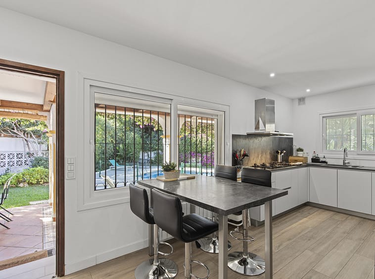 This beautifully presented 4 bedroom, 3 bathroom villa perfectly blends traditional Andalusian charm with sleek, contemporary interiors and is located in the sought after area of Guadalmina Alta.