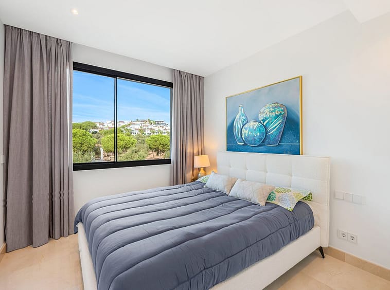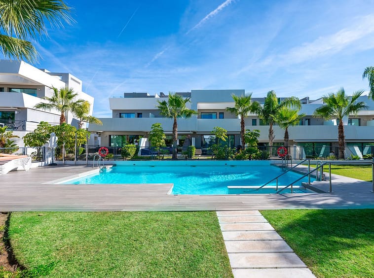 The complex captivates with magnificent pools and beautiful gardens filled with palms, Bougainvillea, and jasmine. International schools are within a 5-minute drive, the beach is a pleasant 10-minute walk, and five golf courses are nearby. The gated community with 24/7 security ensures peace of mind.