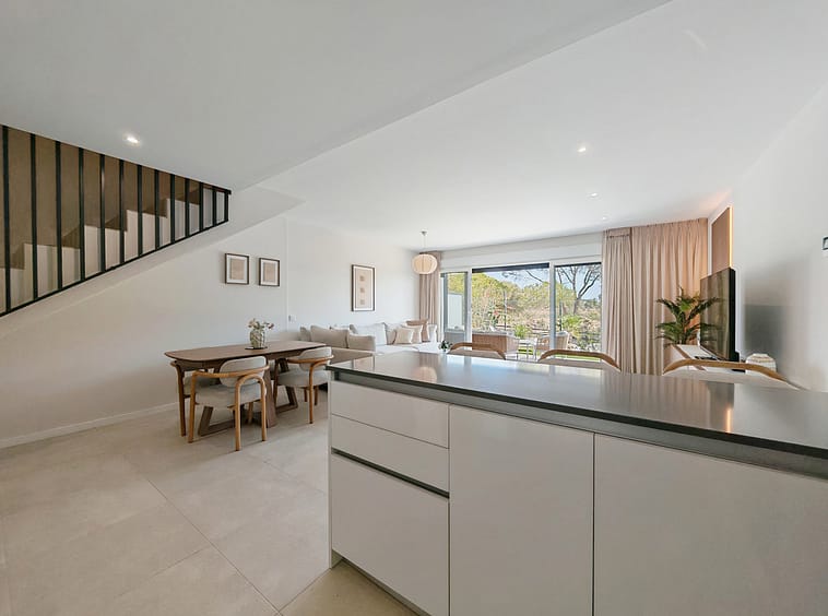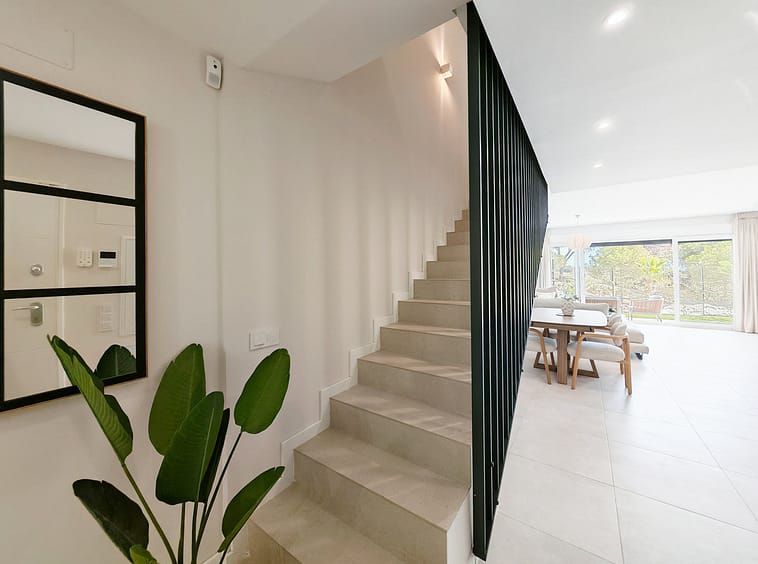 Town House for sale in , Mijas Costa with 4 bedrooms, 2 bathrooms, 1 on suite bathroom, 1 toilet and with orientation south, with communal swimming pool, private garage and private garden. Regarding property dimensions, it has 150 m² built, 119 m² interior and 22 m² terrace. Has the following facilities transport near, air conditioning, fully fitted kitchen, jacuzzi, sauna, guest room, storage room, gym, alarm, solarium, security entrance, double glazing, video entrance, brand new, security service 24h, guest toilet, living room, study room, sea view, heated pool, automatic irrigation system, security shutters, smart home system, dolby stereo surround system, laundry room, internet – wi-fi, covered terrace, 24h service, electric blinds, fitted wardrobes, gated community, garden view, underfloor heating (bathrooms), underfloor heating (partial), close to children playground, close to sea / beach, close to golf, uncovered terrace, glass doors, balcony, optional furniture, spa, wheelchair-accessible, excellent condition, ceiling cooling system, close to shops, close to town, close to schools, surveillance cameras, office room and pets allowed.
