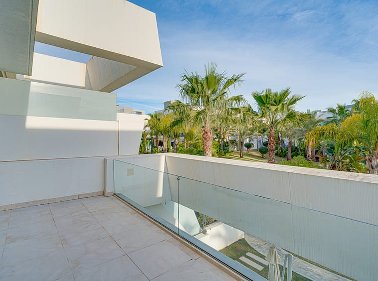 Exceptional four-bedroom townhouse located in an exclusive boutique development of just 48 contemporary luxury townhouses, set on an elevated plot in La Cala de Mijas. The gated community is surrounded by beautifully landscaped tropical gardens and offers three communal swimming pools. Ideally positioned within walking distance to the beach and the vibrant town centre of La Cala. The ground floor features a bright open-plan living and dining area with a modern fully fitted kitchen, opening onto a private garden with direct access to the communal pool, creating an ideal indoor–outdoor lifestyle. This level also includes a guest bedroom and a full bathroom. On the first floor, the property offers a spacious master suite with a private terrace, two additional guest bedrooms, and a stylish shared bathroom. The upper level leads to a generous private solarium, complete with a plunge pool, perfect for relaxing or entertaining. The lower level provides a large multipurpose room, ideal for a gym, home cinema, games room, or additional living space, along with a laundry room and direct internal access to the garage. Additional features include hot and cold air conditioning, two private parking spaces and concierge service. This property offers a perfect combination of contemporary design, comfort, and a prime coastal location with short term rentals allowed within the community.