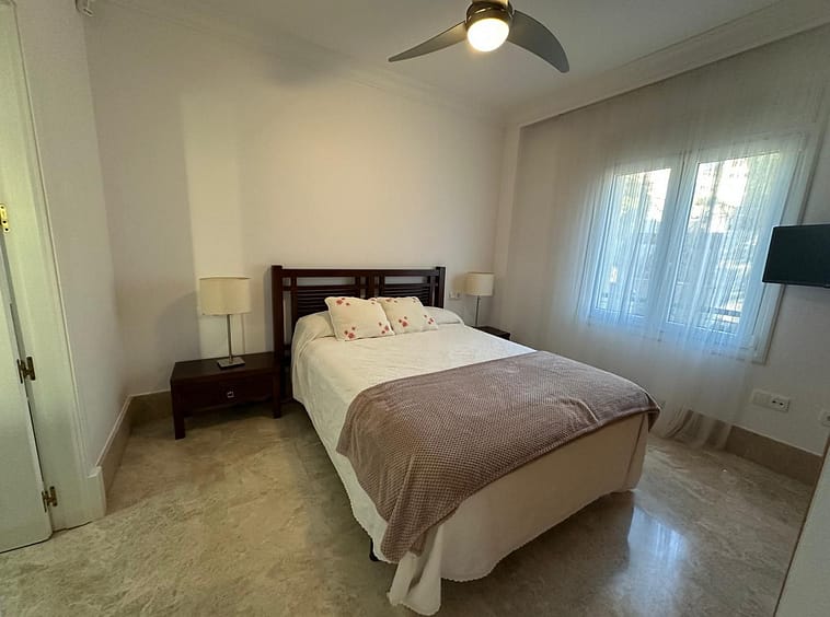 Residents benefit from well-maintained communal gardens and a communal swimming pool within a gated complex with 24-hour security. A solid choice as a golf-side residence or investment in one of Marbella East’s established residential areas.