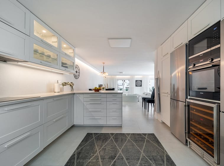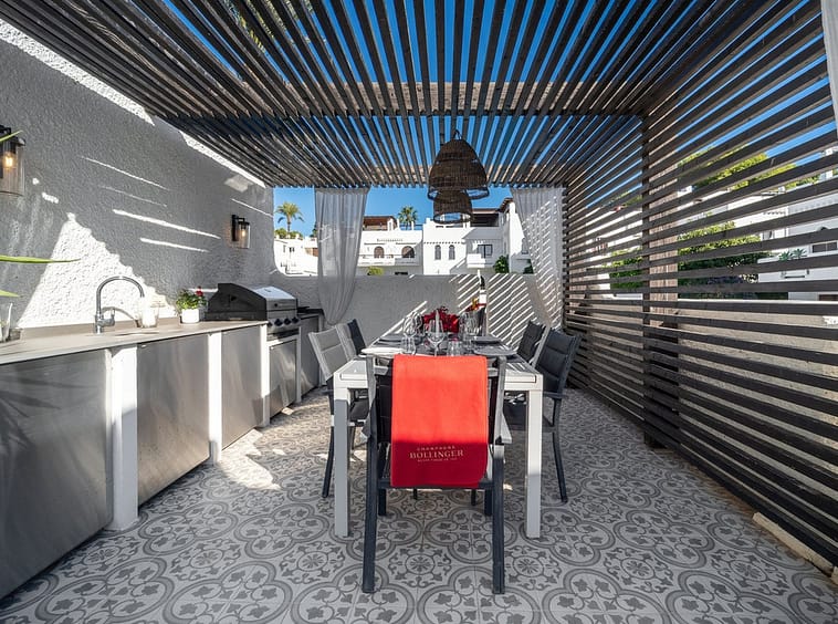The house offers a design focused on daily comfort, combining Scandinavian-inspired lines with Mediterranean details. It has approximately 176 m² indoors and a 93 m² solarium equipped with an outdoor kitchen, barbecue area, chill-out space, dining area, electric awning, and laundry room. In total, it adds up to 269 m², with three double bedrooms and an additional guest room, all with en-suite bathrooms, as well as various terraces and balconies that allow you to enjoy the sun all day long thanks to their multiple orientations.