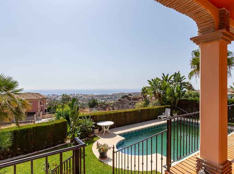 Large, attractive family home in very quiet area close to Marbella and next to a Natural Park. Beautiful open south and south-west views. Large, fully equipped kitchen with fireplace and sea views. Ample living/dining room leading out onto terrace and pool. Large basement.