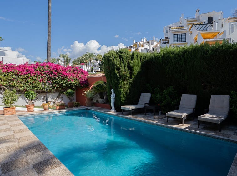 This villa offers comfort, privacy, and convenience in a prime residential area just 1 km from Puerto Banús. Set on a 512 m² plot with a 204 m² built area, the property enjoys access from two streets—Las Yedras and Las Camelias—and benefits from having no community or garage fees.