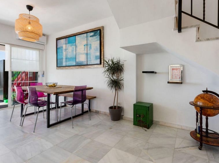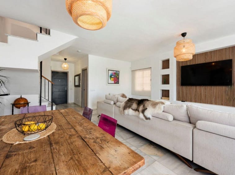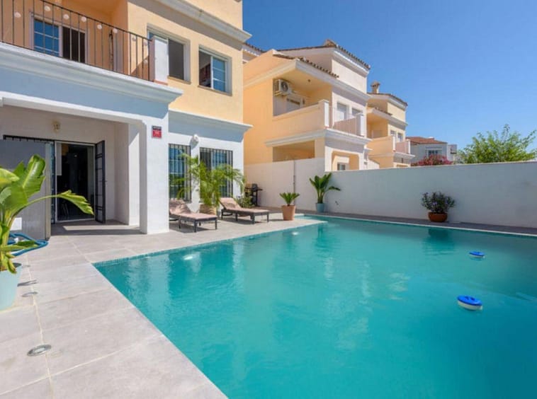 Positioned within the established Bel Air area of Estepona, this beautifully presented home offers a well-proportioned layout arranged across three levels, combining generous interior space with private outdoor areas, ideal for both full-time living and holiday use. The property offers a total built area of 166m², plus a further 59m² of terraces, with the ground floor briefly comprising; entrance hall, kitchen, guest WC, and a bright living and dining area with direct access to a 70m² rear garden complete with a stunning private swimming pool. The first floor accommodates three bedrooms and two bathrooms, while the second floor features a further bedroom and bathroom, opening onto a private solarium terrace that enjoys open views and excellent sun exposure.