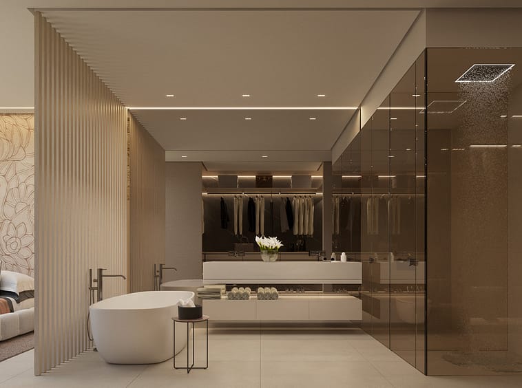 On this level, you'll discover four exquisite bedrooms, each featuring its own en-suite bathroom and private terrace. The master suite, with nearly 40 square meters of space, encompasses a walk-in closet and an elegantly designed open-plan bathroom, delivering the epitome of a luxurious suite experience.