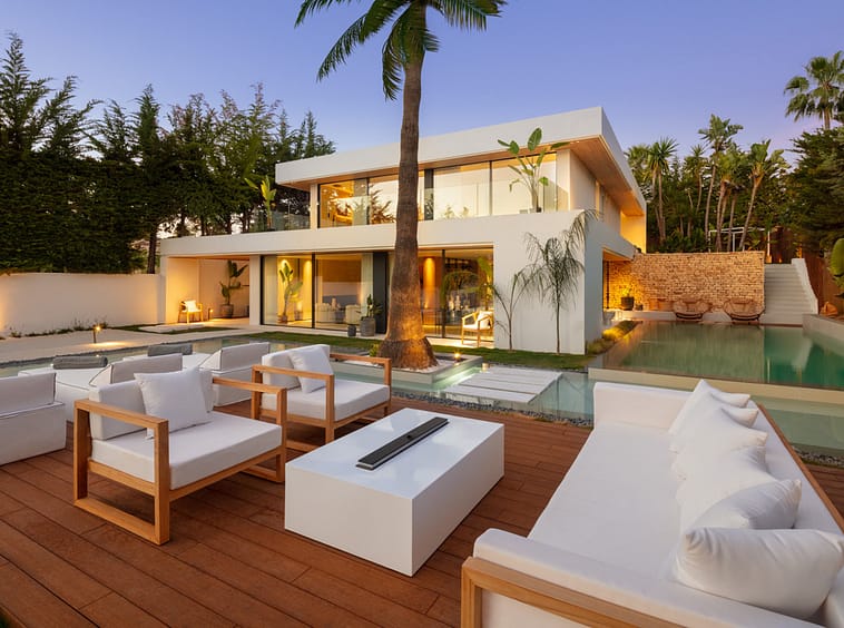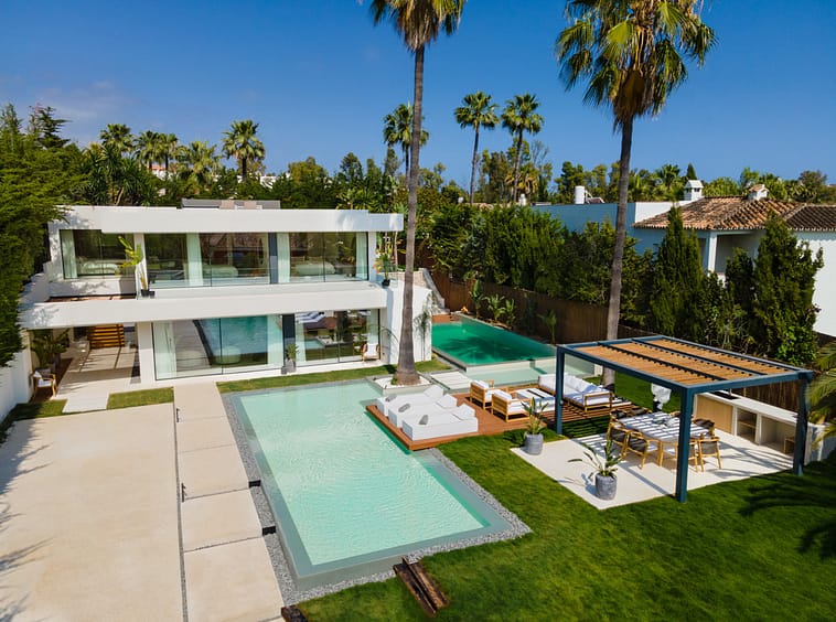 Welcome to Auriga 1, an exceptional modern villa located in the heart of Nueva Andalucía, offering a seamless blend of style, luxury and comfort. Set on a generous plot of 1,038m², this beautifully crafted home boasts four spacious bedrooms and four elegant bathrooms, all designed with meticulous attention to detail. The interiors are flooded with natural light thanks to expansive floor-to-ceiling windows, highlighting the sophisticated neutral palette, high-end finishes, and open-plan living spaces that create a warm, inviting atmosphere.