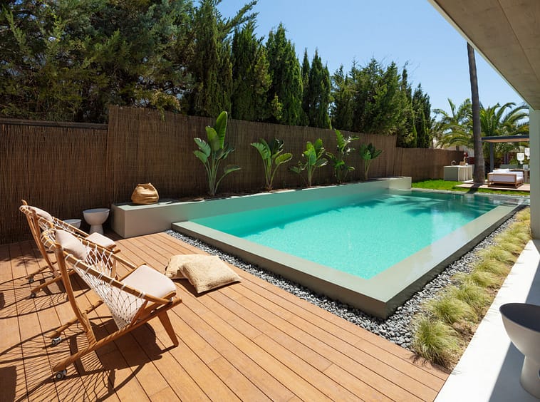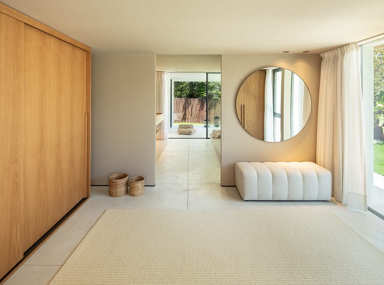 Step inside to discover a state-of-the-art kitchen, a refined dining area, and a cozy lounge, all framed by contemporary architectural lines and tasteful décor. The principal bedroom suite is a true sanctuary, featuring a spa-like en-suite and views to the landscaped gardens. A unique highlight is the seamless transition between indoor and outdoor living, with large sliding doors opening onto a private oasis complete with a spectacular pool, lush green garden, and stylish chill-out zones – perfect for entertaining or relaxing under the Mediterranean sun.
