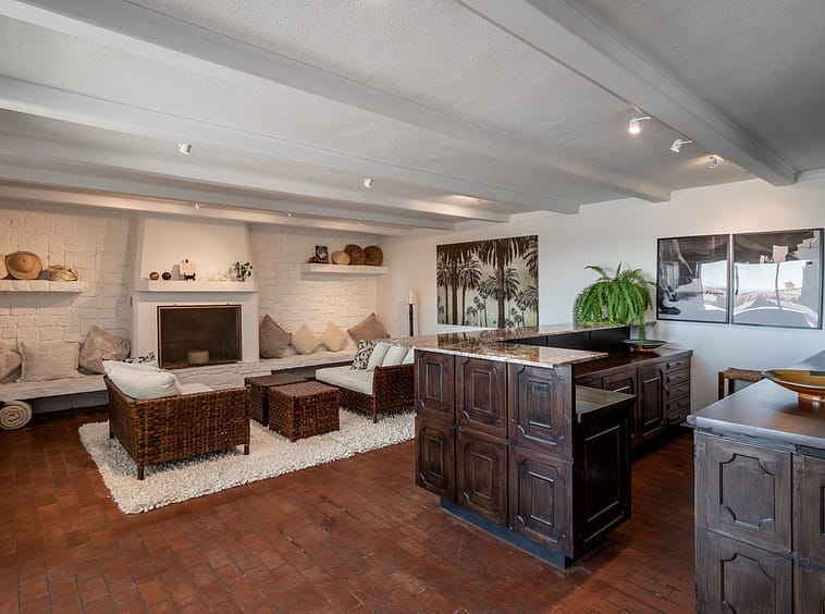The first floor is dedicated to the main sleeping quarters. Here you’ll find the serene master bedroom with its en-suite bathroom and access to a private terrace furnished with a sofa, fireplace, and sunbed. Two additional guest bedrooms share a well-appointed bathroom, making this level perfect for family or visiting friends.