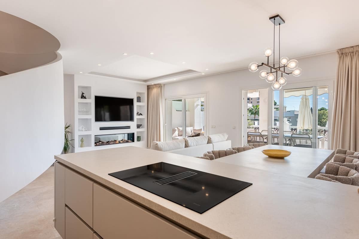 Discover the finest residence in Aloha Gardens, a beautifully reformed semi-detached home located in the heart of Nueva Andalucía, Marbella. Set within one of the area’s most sought-after urbanisations, this exceptional property blends contemporary luxury, panoramic views, and an unbeatable location just steps from restaurants, cafés, and padel and tennis courts, and only a few minutes’ drive from world-class golf courses including Los Naranjos, Aloha, and Las Brisas.